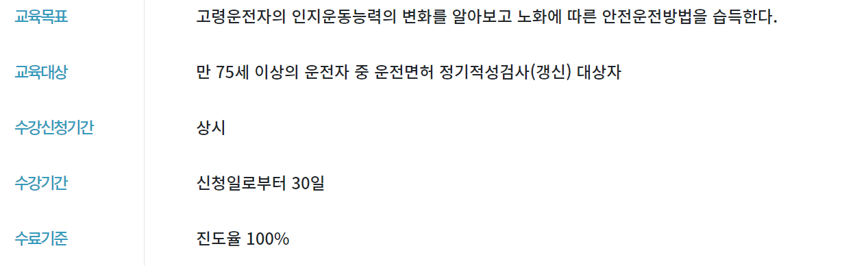 - 교육의 대상은: 만75세 이상의 고령의 운전자