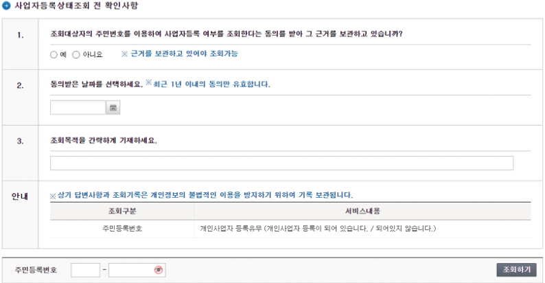- 1. 조회대상의 주민번호를 동의 하고 있는가