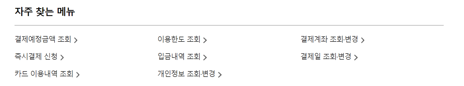 자추 찾는 메뉴로 홈페이지에서는 결제 예정금액이나 이용내역 조회 등등을 보고 알수가 있습니다.